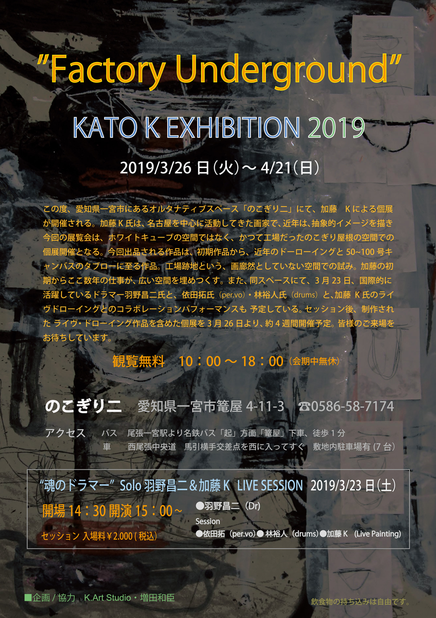 2019.3.23 / 3.26 - 4.21"Factory Underground" Kato K Exhibition 2019 |